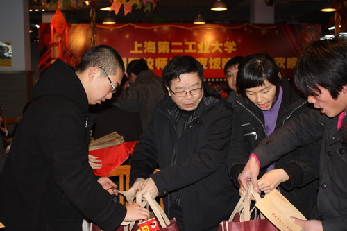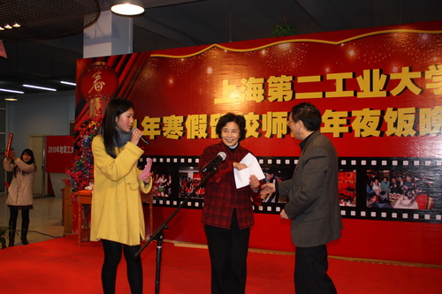 1月27日晚,市教卫党委、市教委副秘书长佘国平和校党委书记徐佩莉、校长胡寿根、校党委副书记李世平等领导和留校的170多名外地学生一起在学校东三食堂共享团圆之夜。丰盛的饭菜、声声的祝福承载了师长们对学生的关心和厚爱。徐佩莉书记祝愿同学们兔年身体健康、学习进步、万事如意。胡寿根校长祝愿同学们多学习、勤实践,寒假过得充实有意义,毕业后的成就超过校友们。学校还向留校的同学每人赠送了200元红包和欢乐大礼包。