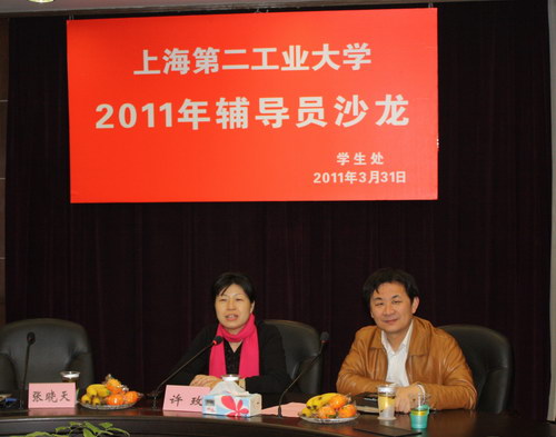 3月31日下午,2011年首期辅导员工作沙龙在图文201会议室举行。校党委副书记李世平,复旦大学学工部部长许玫、上海曙光医院主任医师张晓天博士出席了沙龙,各学院总支副书记、全体辅导员参加了本期沙龙。沙龙由学生处处长经晓峰主持。