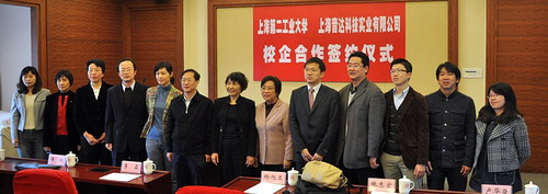 2011年4月22日上午,上海第二工业大学与上海音达科技实业有限公司校企合作签约仪式在图文信息中心叙述堂举行,校长办公室、对外交流与合作办公室主任俞雷霖和上海音达科技实业有限公司总经理钱忠诚分别代表校企双方在协议上签字。邹龙飞副校长、音达公司董事长宋星一女士和徐汇区政府相关领导见证签约仪式并先后致辞。签约仪式由电子与电气工程学院院长洪晓鸥主持。