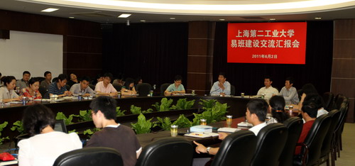 我校易班建设交流汇报会于2011年6月2日在图文中心201室举行。校党委副书记李世平、校学生处处长经晓峰、学生处副处长淦爱品、许燕平、各学院党总支副书记和全体辅导员参加会议。会议由校学生处处长经晓峰主持。