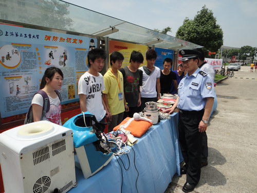 22日中午,浦东公安分局张江高校派出所、后勤服务公司、保卫处在东食堂前联合举办了消防安全警示教育展。通过消防安全知识展板、摆放违章电器实物和安全承诺等形式,使广大师生员工认识到了火灾的危害性,掌握了相关安全生产和火灾防控的知识和技能。
