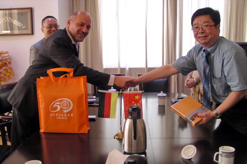 6月27日下午,胡寿根校长在900会议室会见了应邀来我校访问的德国瑞文斯堡合作教育大学Beier(白烨)教授,王刚副校长陪同会见。胡校长对白烨教授的来访表示欢迎,并向白烨教授介绍了我校的办学历史与发展现状。双方就德国双元制教育、中国高校的卓越工程师计划、上海教育国际化、提升我校中外合作教育层次、合作开展留学生教育等共同感兴趣的话题展开了讨论,气氛友好而热烈。