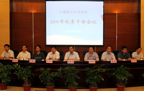 上海第二工业大学2011年秋季干部会议于9月6日举行。会议传达了上海高校党政负责干部会议精神,部署了新学期工作。2011年是我校实施“十二五”规划的开局之年、持续突破提升的起始之年、科学发展的深化之年,加强内涵建设、做好育人工作,实现突破提升是学校当前的重要任务。要在上半年工作的基础上,认真学习贯彻胡锦涛总书记“七一”讲话和上海市委九届十五次全会精神,继续推进各项工作的落实。