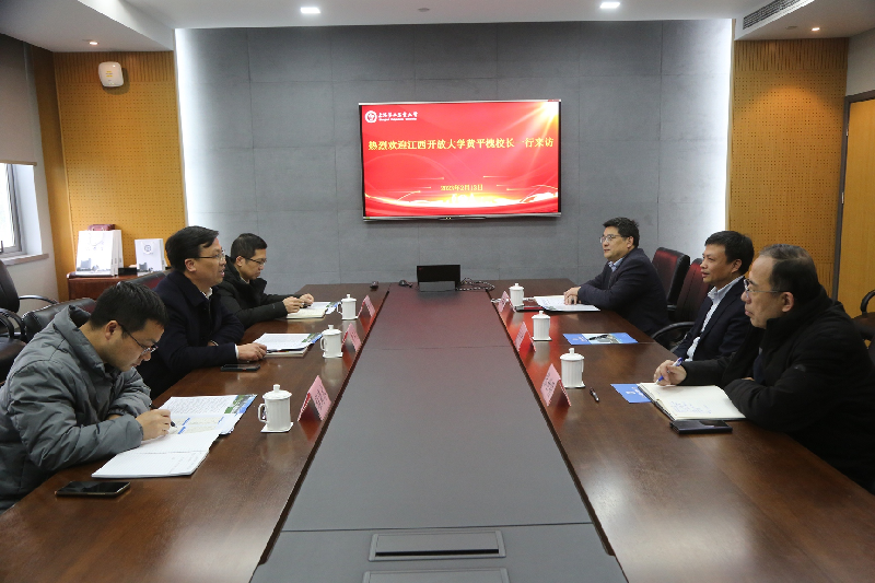 2月13日,江西开放大学校长黄平槐一行来我校交流访问。校长谢华清在学术交流中心会见了来宾,双方进行了座谈。
