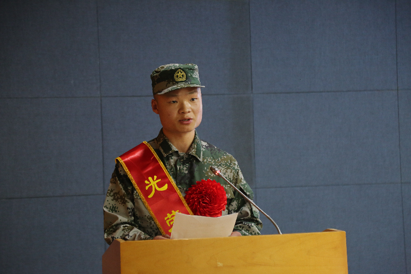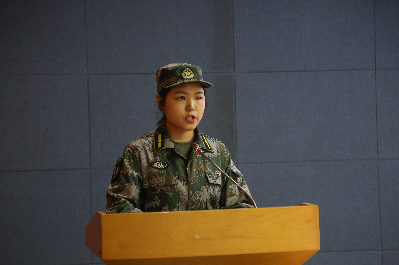 老兵代表2021级电子信息工程专业学生王雪莲分享了自己的军旅生涯并希望同学们做到三个“转变”。