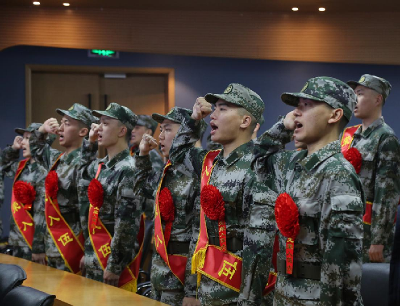 会上,全体预定新兵进行了庄严的入伍宣誓。