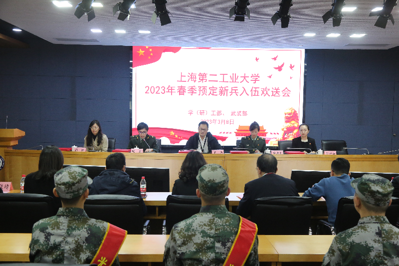 3月8日中午,我校2023年春季预定新兵入伍欢送会在19号楼201会议室举行。副校长丁力、相关职能处室和各学院学生工作负责人、辅导员、预定新兵参加了欢送会,预定新兵家长们通过在线直播的方式共同参与了欢送会。会议由学生处副处长(挂职)陈钦主持。
