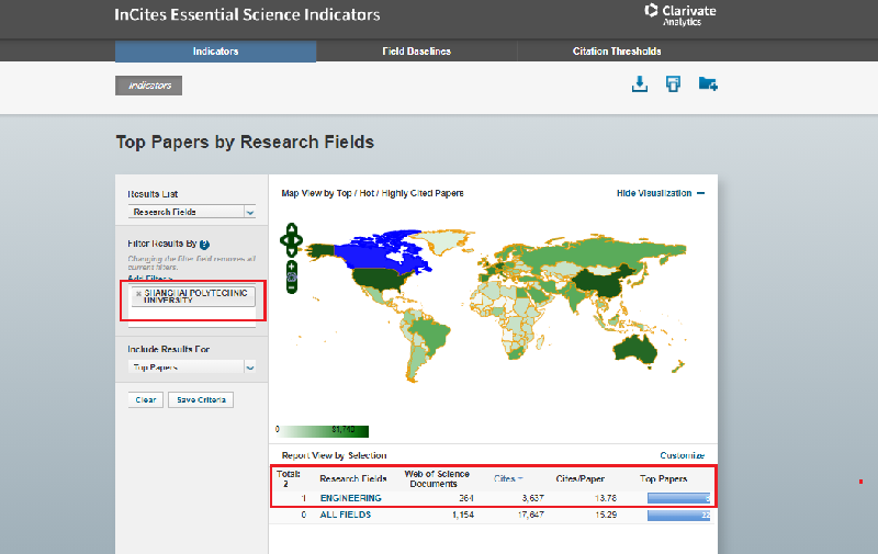 根据科睿唯安(Clarivate Analytics)3月9日发布的最新ESI(Essential Science Indicators,基本科学指标)数据显示,我校工程科学学科首次进入ESI全球排名前1%,实现了历史性突破!标志着我校学科建设取得重大进展,工程科学学科迈入了国际高水平行列。据统计,此次中国大陆一共409所高校有学科进入全球前1%,其中内地仅新增8所,我校成功跻身新晋升榜单。 ESI是基于Web of Science所收录的全球12000多种学术期刊近十年发表的SCIE、SSCI论文和被引数据而建立的计量分析数据库,它是衡量科学研究水平、跟踪科学发展趋势的分析评价工具,具有广泛的代表性,已经被全球普遍认可,目前已成为世界范围内评价高校、学术机构、国家/地区学术水平及影响力的重要评价指标工具之一。 我校自跟踪ESI数据以来,精准布局及支持优势学科,学科建设发展稳步提升。本期数据显示,我校近十年共发表ESI论文1154篇,他引17647次,篇均他引15.29次,高被引论文22篇。其中在工程学领域共发表ESI论文264篇,他引3637次,篇均他引13.78次,高被引论文6篇,学校四大工科学院为学校工程科学进入ESI前1%做出了重要贡献。