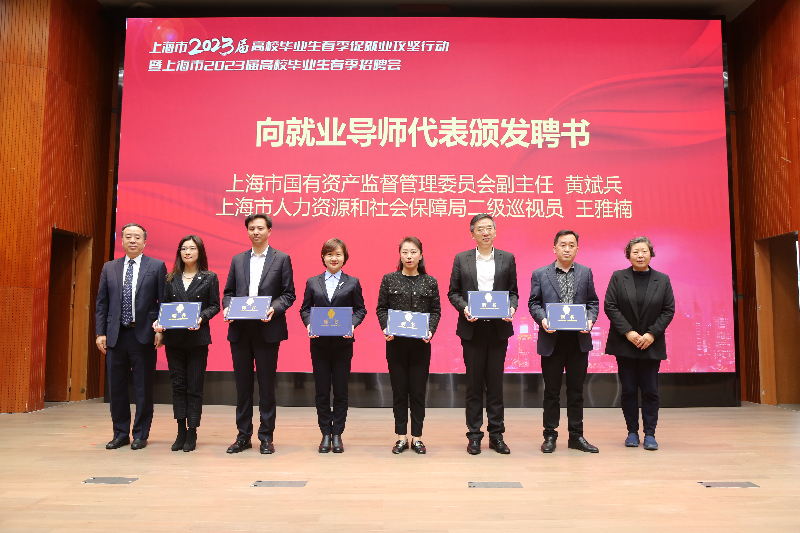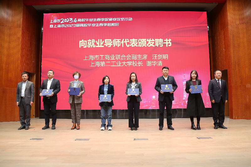 启动仪式上,市教委总督学平辉介绍了上海高校毕业生春季促就业攻坚行动计划;宝山区副区长薛飒飒介绍了宝山区的引才举措,市国资委副主任黄斌兵、市人社局二级巡视员王雅楠、市工商联副主席汪剑明、我校校长谢华清为首批上海市大学生“百名就业导师”颁发聘书。