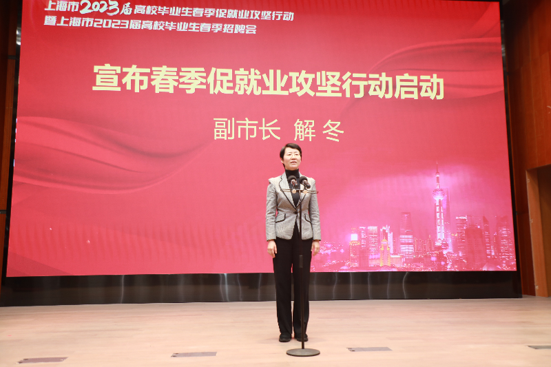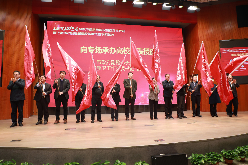 3月17日下午,上海市2023届高校毕业生春季促就业攻坚行动在二工大拉开序幕,副市长解冬出席并宣布启动。市政府副秘书长王平、市教卫工作党委书记沈炜向承办重点行业专场招聘会的复旦大学、上海交通大学、华东理工大学等高校授旗。市教委总督学平辉主持启动仪式,我校党委书记吴松致欢迎词。在同时举办的上海市2023届高校毕业生春季招聘会上,3.2万余名各大高校毕业生参加现场双选,投递简历超21.7万份,达成初步意向1.3万人次。