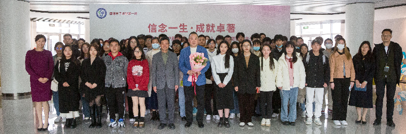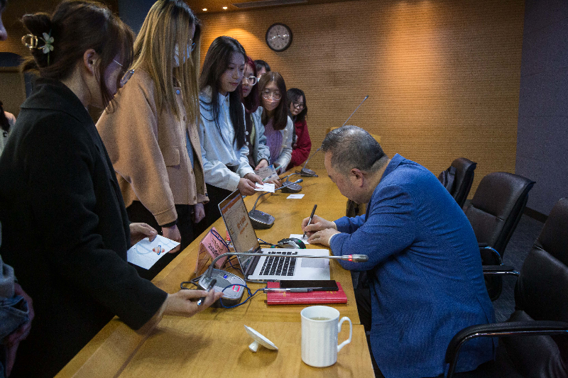 讲座结束后,师生代表纷纷上台献花,滕俊杰导演亲切地与大家合影留念并为同学们手写签名,寄予祝福。