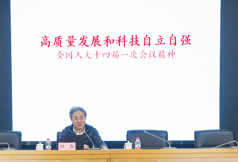 印杰以“高质量发展和科技自立自强 全国人大十四届一次会议精神”为题,介绍了今年全国两会的基本情况,重点传达了习近平总书记参加江苏代表团审议、民建与工商联界委员联组会议时所作的重要讲话精神,介绍了政府工作报告、立法法修改、国务院机构改革方案等两会通过的各项报告和法律案的主要内容,传达了全国人大上海代表团的审议和提案情况,他还结合自己的履职经历和参会感受,围绕创新型国家建设、科技自立自强与高等教育改革发展等作了交流。 印杰所作的报告,内容丰富、重点突出,对于我们深刻理解和把握全国两会精神、推进学校高质量发展具有很大的启发。