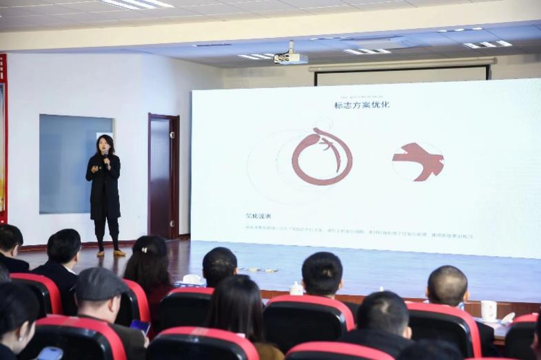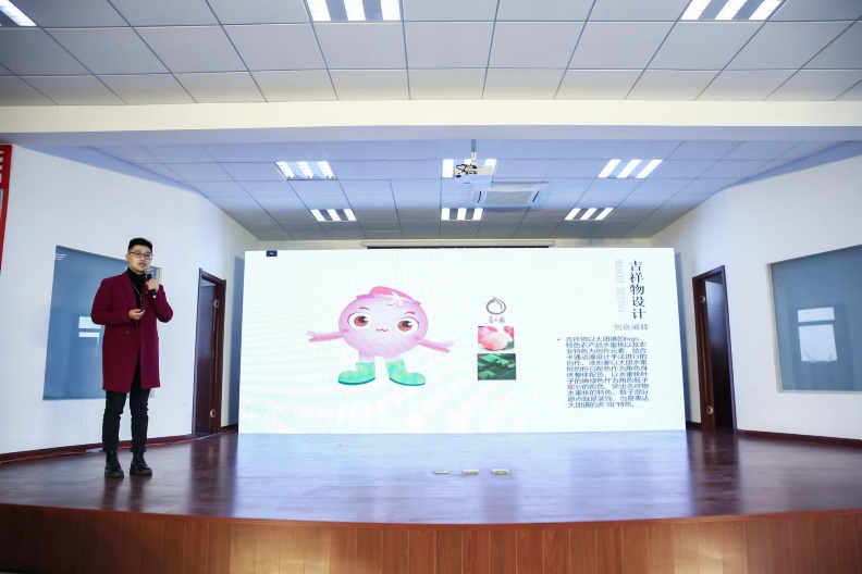 作为金大团设计项目的负责人,艺术学院视觉传达设计系系主任田华老师代表团队详细介绍了“金大团”标志的设计方案;团队成员数字媒体艺术系闫星老师阐释了吉祥物“团团”的诞生过程。当天亮相的“金大团”徽章和吉祥物“团团”一经推出就受到了大家的喜爱,预约徽章和与“团团”合影的人络绎不绝。与会的部分企业也主动联系团队商讨合作事宜。