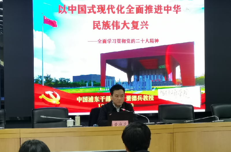 4月4日下午,中国浦东干部学院董德兵教授应邀为我校2023年辅导员素质能力提升专题培训班学员作了题为“以中国式现代化全面推进中华民族伟大复兴——深入学习贯彻党的二十大精神”的专题报告。报告会由学(研)工部部长董凌莉主持。
