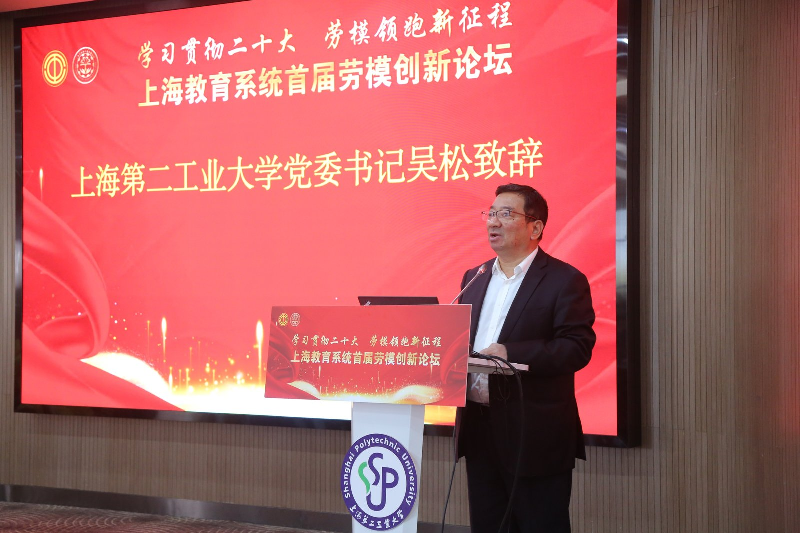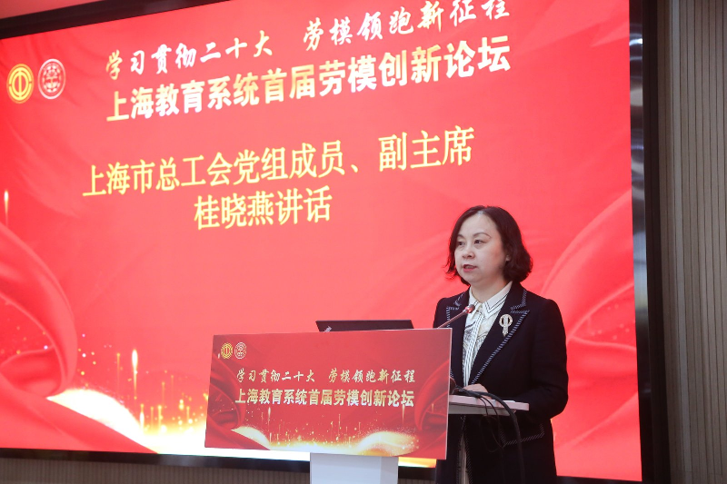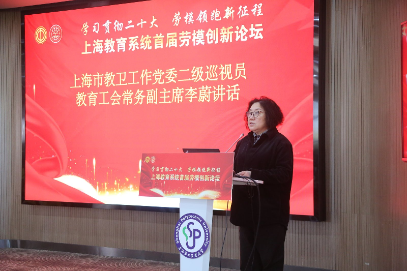 论坛由上海市总工会、上海市教卫工作党委指导,中国教育工会上海市委员会主办,中国教育工会上海第二工业大学委员会、上海市教育系统劳动模范协会承办,上海市劳模文化研究中心协办。市总工会党组成员、副主席桂晓燕,市教卫工作党委二级巡视员、教育工会常务副主席李蔚出席并讲话,校党委书记吴松致欢迎辞,30多位上海教育系统“劳模创新工作室”劳模代表以及各高校工会、各区教育工会(含中职联)、机关直属单位工会负责人等出席论坛。论坛以线上线下相结合的方式举行,上海教育系统工会干部在线参加论坛。