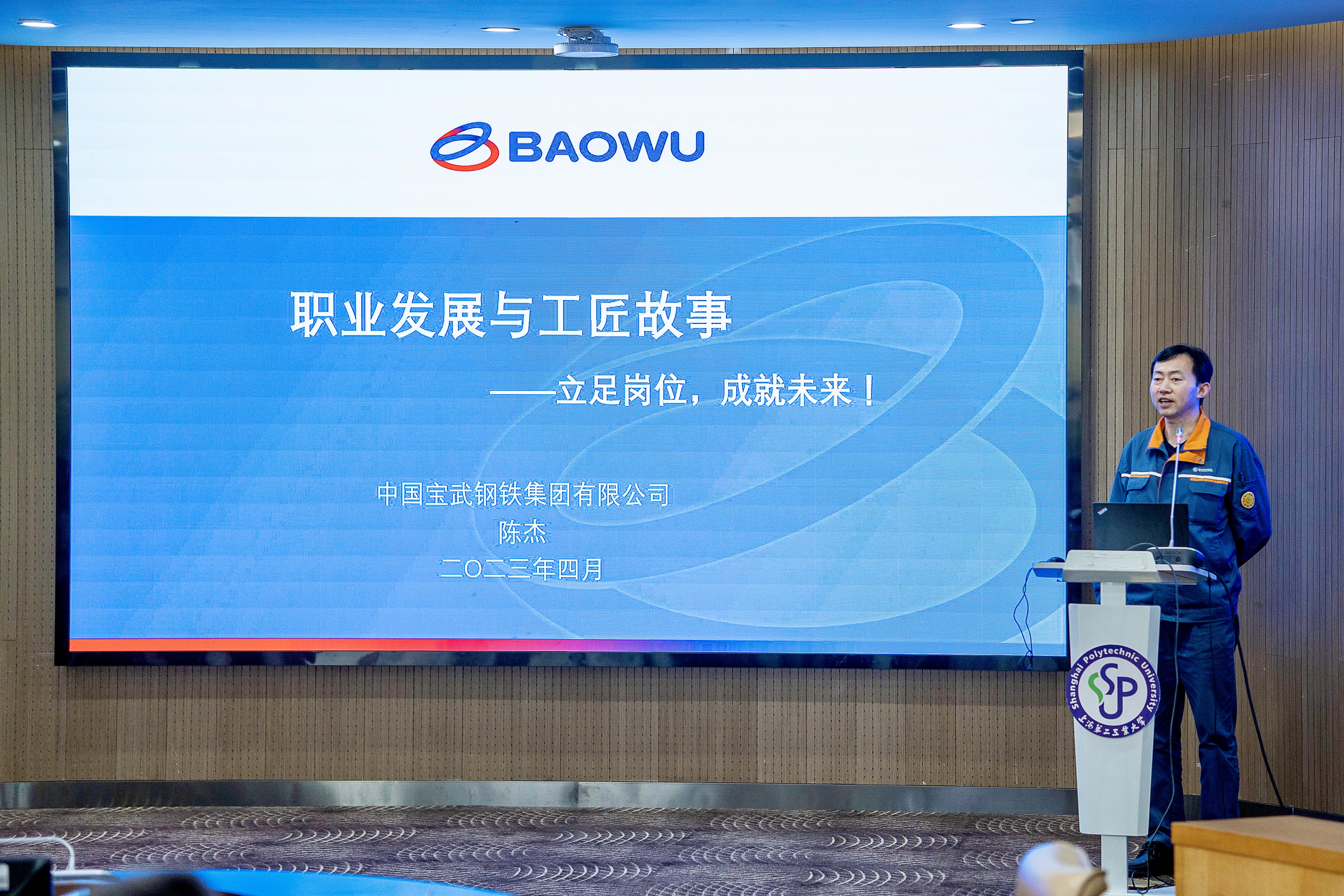 中国宝武集团首席技能大师陈杰在19号楼301室为相关专业学生带来题为“工匠精神与宝钢的高质量发展”的讲座,陈杰以“职业发展与工匠故事”为主题,从个人经历、职业发展、宝钢的科研创新、打破技术垄断等,向同学们分享了从校园到企业的个人经历与现阶段企业岗位分布情况,介绍了工厂环境与工作情况,并对经典案例进行了详细分析讲解。