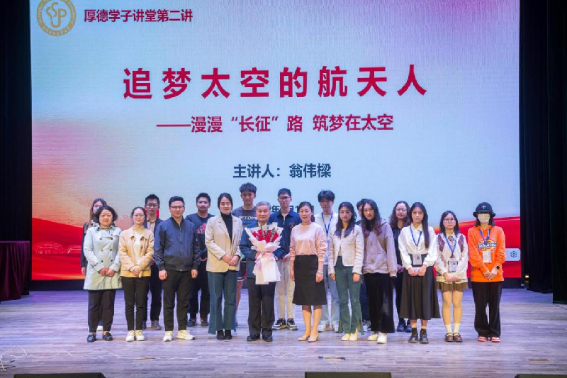 4月12日下午,上海市先进工作者、全国关心下一代工作先进工作者,原上海航天研究院长征四号乙/丙系列运载火箭总指挥,国务院“政府特殊津贴”获得者翁伟樑研究员做客“厚德”学子讲堂,以“追梦太空的航天人——漫漫‘长征’路 筑梦在太空”为主题,讲述了中国航天的发展历程。讲座由学工部副部长孙颖主持。