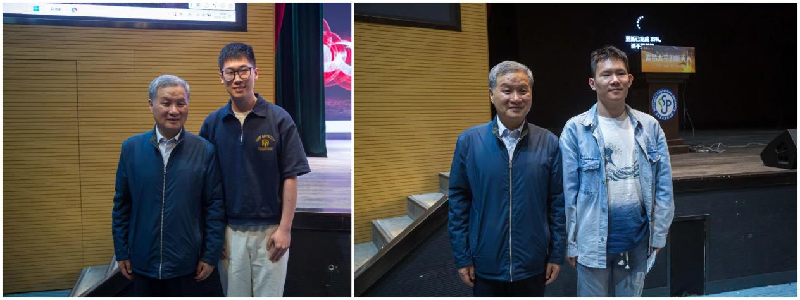讲座结束后,学生代表上台献花并合影留念,表达对翁伟樑老师的感谢和敬意。
