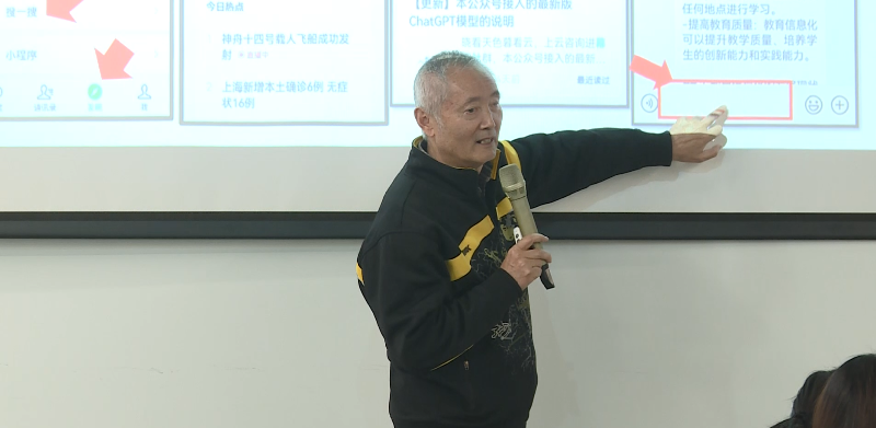 本次讲座主要聚焦当前生成式人工智能技术的热点:ChatGPT在教学中的应用,培训教师掌握在教学中运用ChatGPT进行教学设计的基本技能。培训现场,黎教授采用理论与实践相结合的模式,深入浅出地阐述了如何用好生成式人工智能赋能教学,他使用引人入胜的语言和生动的例子,让参与学习的教师“做中学”,现场体验ChatGPT的强大功能,并探索了在教学中用好ChatGPT的教学方法。大家认真倾听、相互交流、共同学习,现场气氛十分热烈。